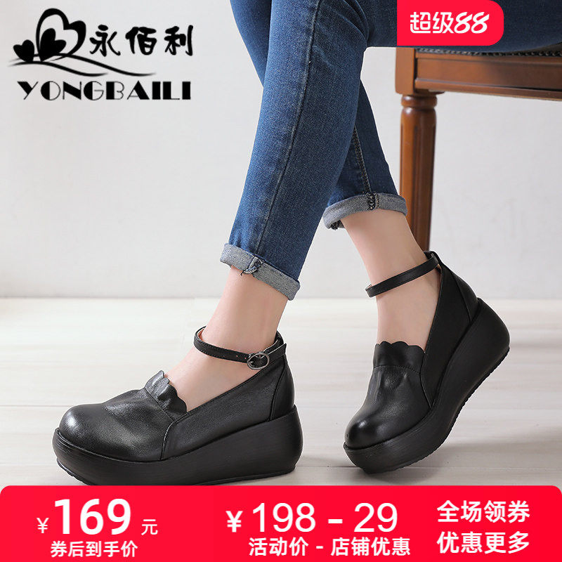 复古小皮鞋女2026春秋新款牛皮松糕鞋英伦风百搭韩版坡跟软面单鞋