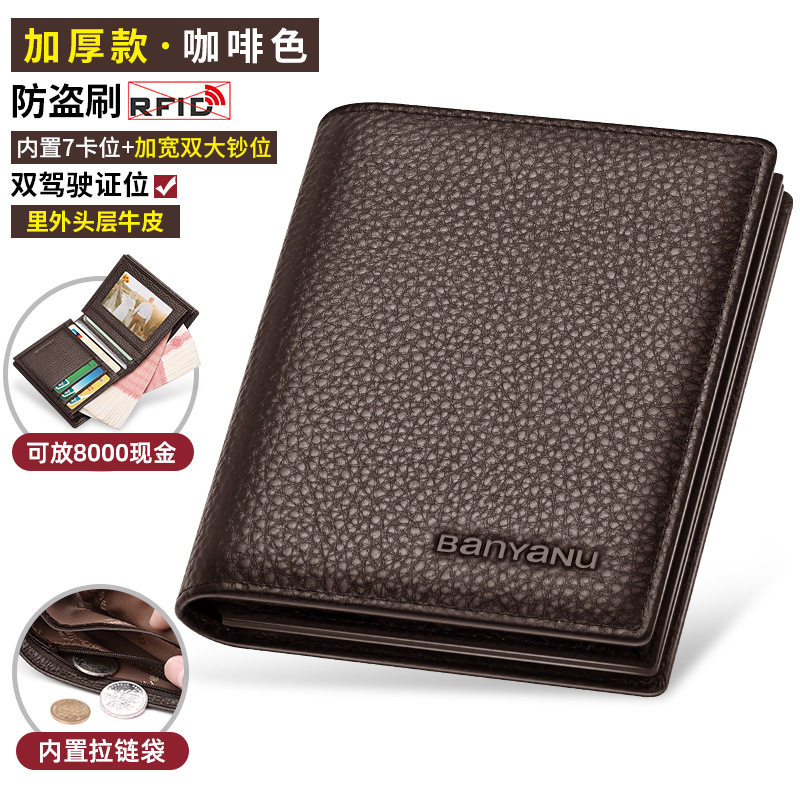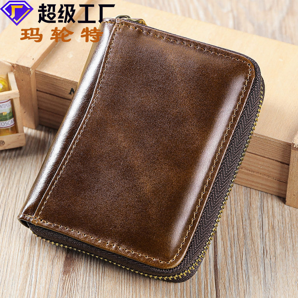 2025新款头层牛皮钱包男士短款真皮商务皮夹子竖款拉链加厚钱夹潮