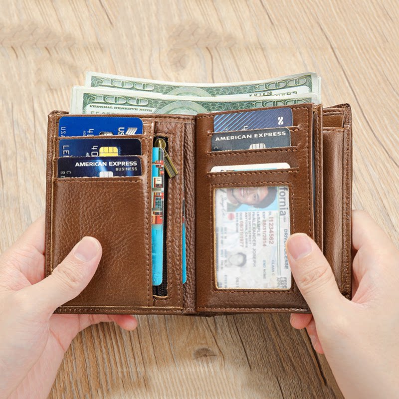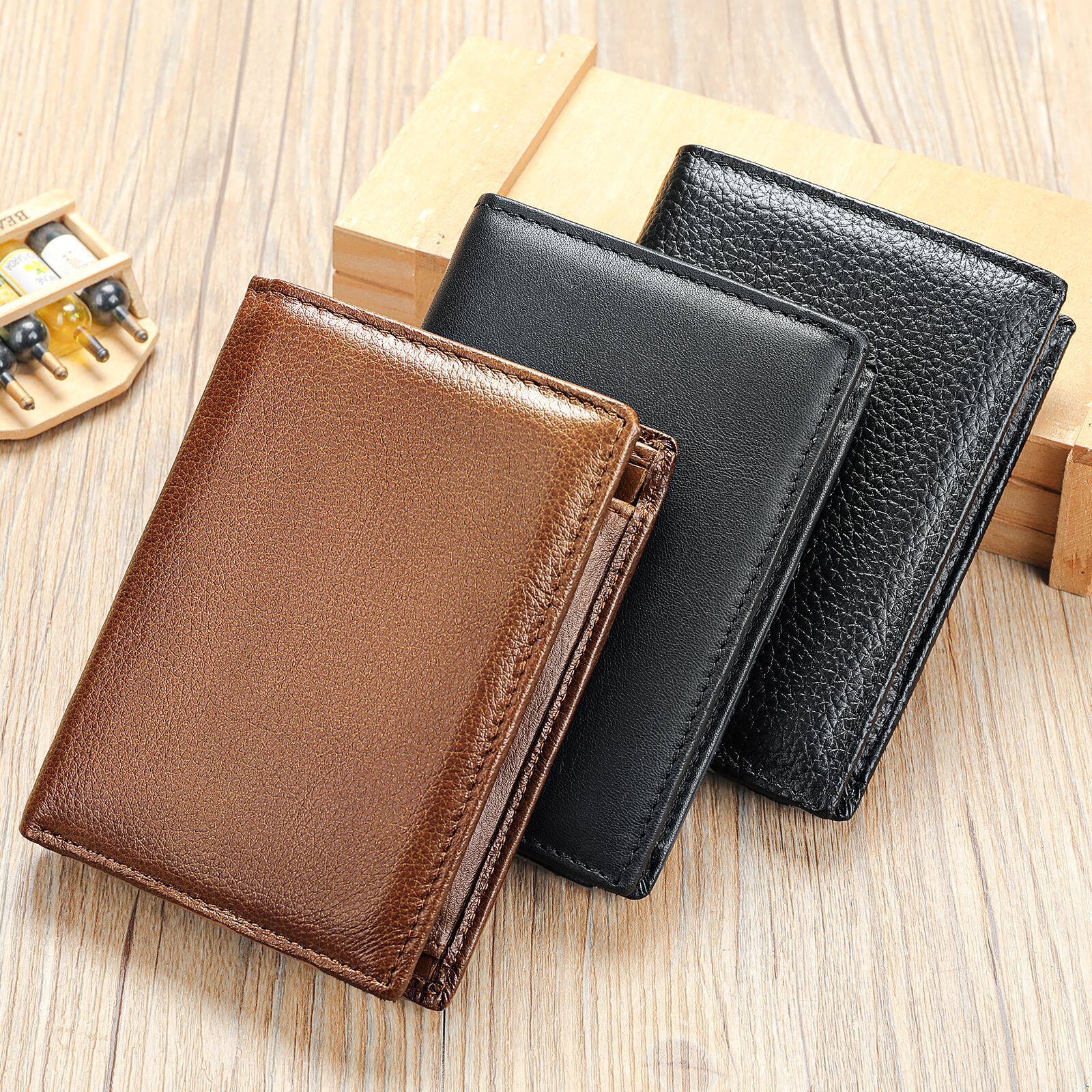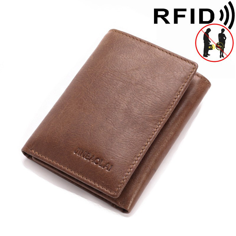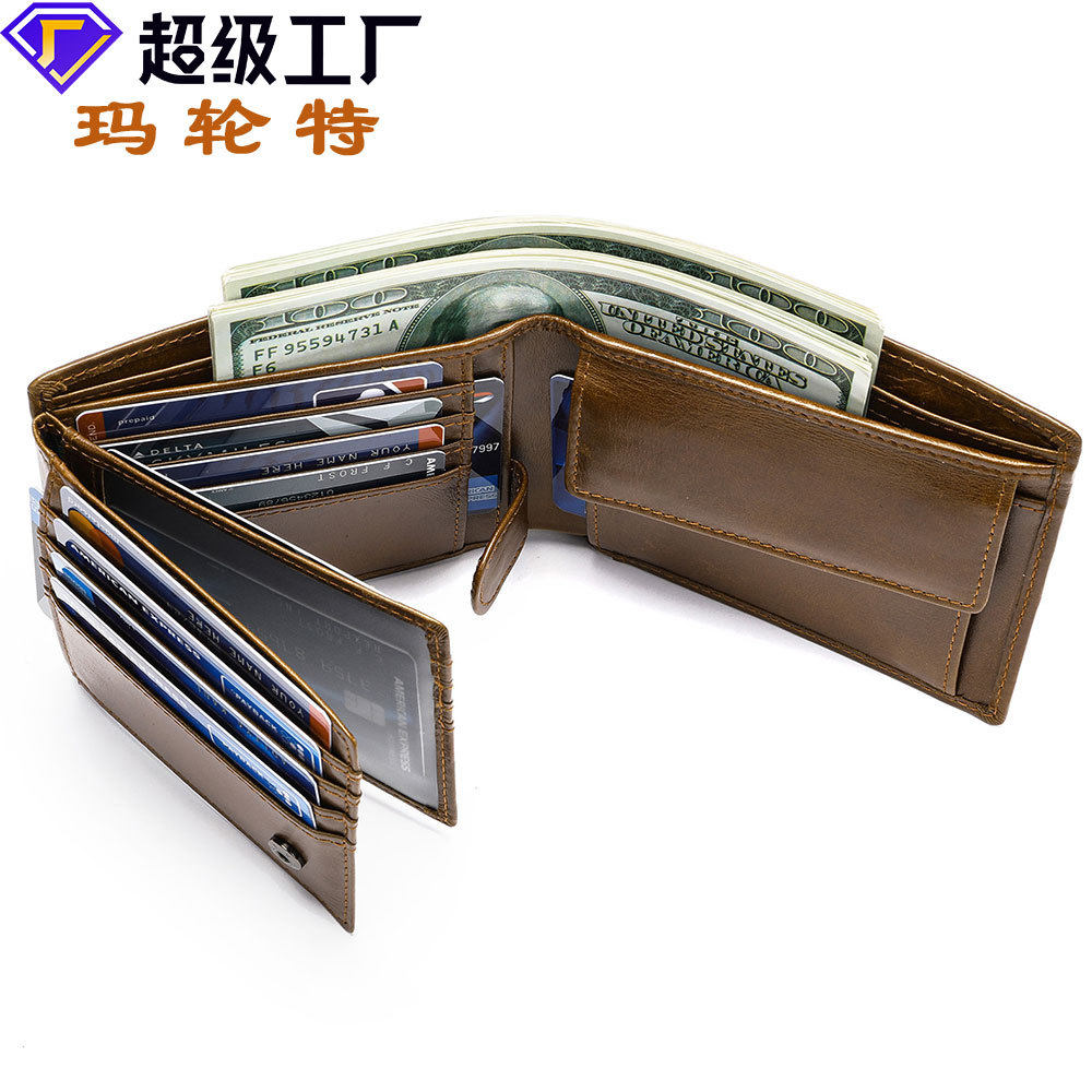 RFID防磁防盗刷多卡位钱夹真皮三折零钱包头层牛皮钱包男士wallet