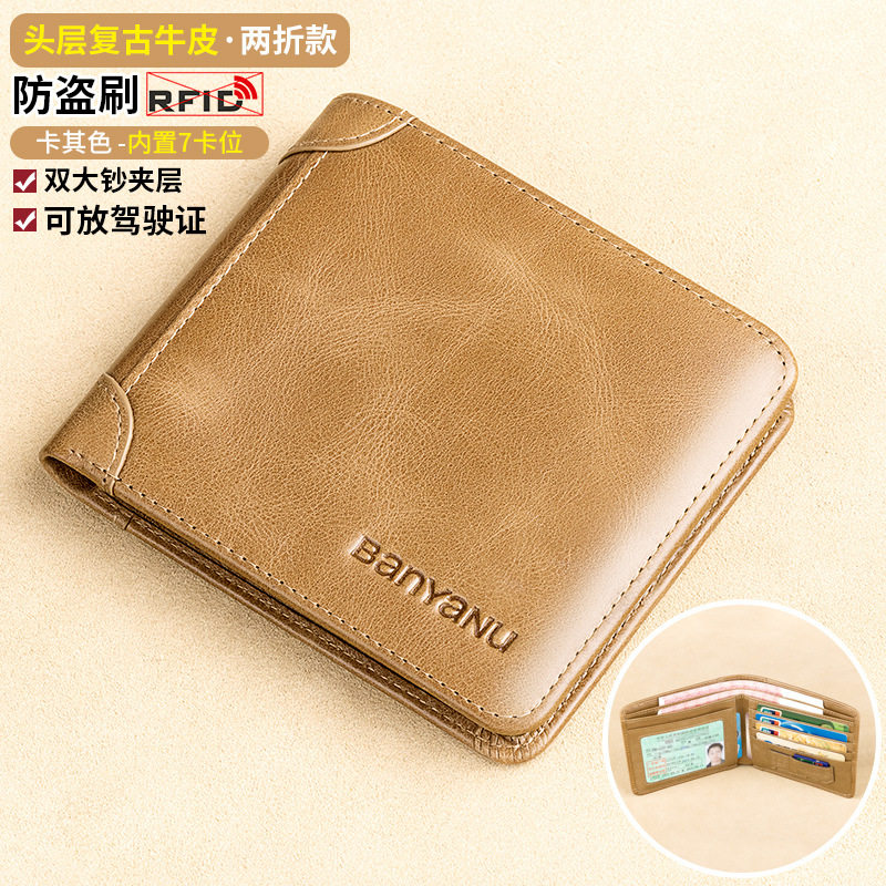 真皮防磁头层牛皮钱包男士短款商务多卡位钱夹防盗刷RFID零钱包