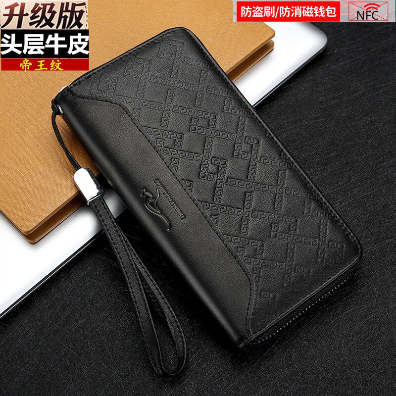 2023新款头层牛皮钱包男士长版手拿包真皮拉炼手包男带挂绳手抓包