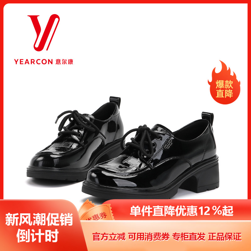 意尔康女鞋2025新款真皮厚底单鞋系带乐福鞋松糕鞋女厚底英伦皮鞋