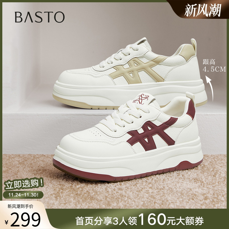 百思图2025秋季新款百搭松糕厚底小白鞋板鞋女运动休闲鞋V0121AM5