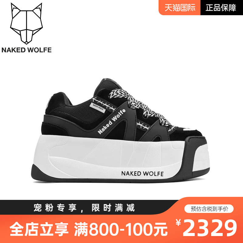 Naked Wolfe英国潮牌/SLIDER真皮松糕鞋女厚底增高磨砂拼网布女