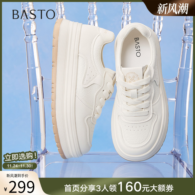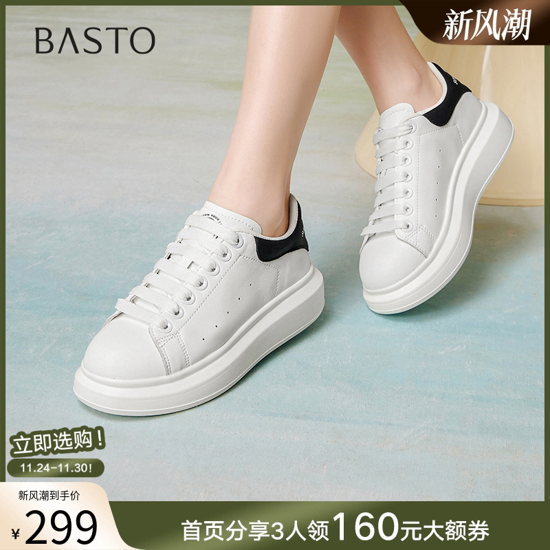 百思图2025秋季新款百搭厚底松糕小白鞋运动板鞋女休闲鞋W0803CM5