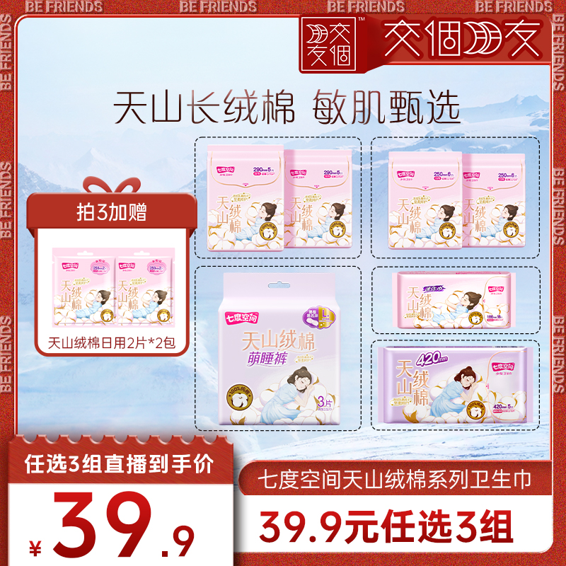 七度空间卫生巾夜用420mm超长纯棉姨妈女整箱批发官方旗舰店正品