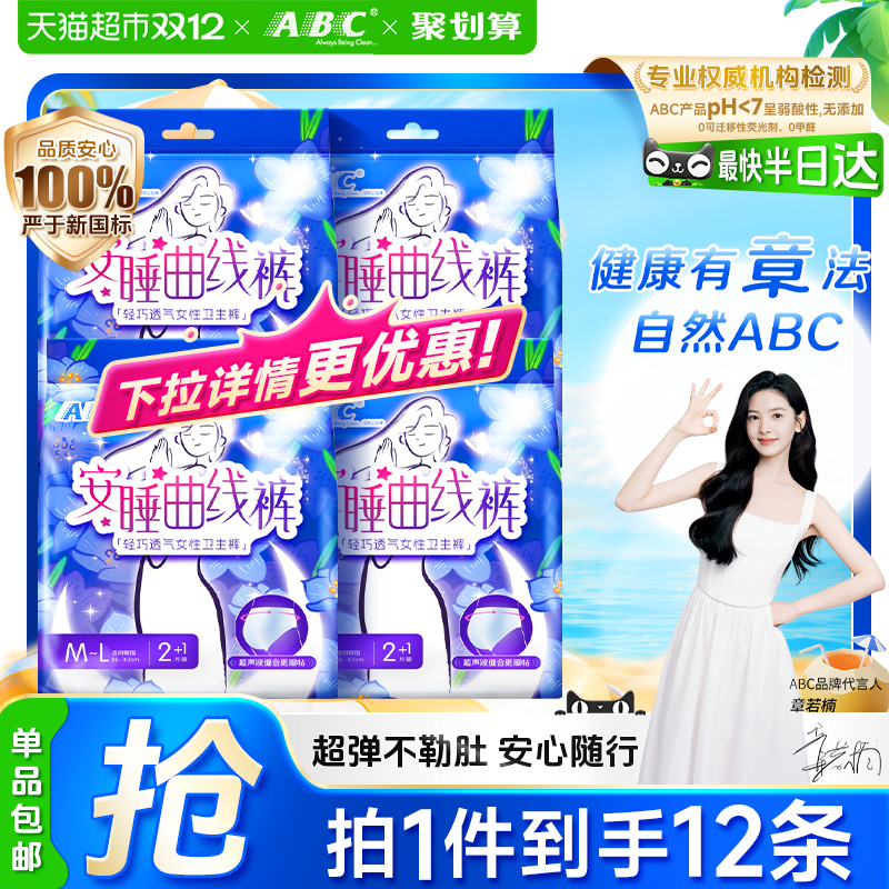 ABC卫生巾夜用整箱5包40片棉柔清凉280mm姨妈巾透气亲肤正品包邮