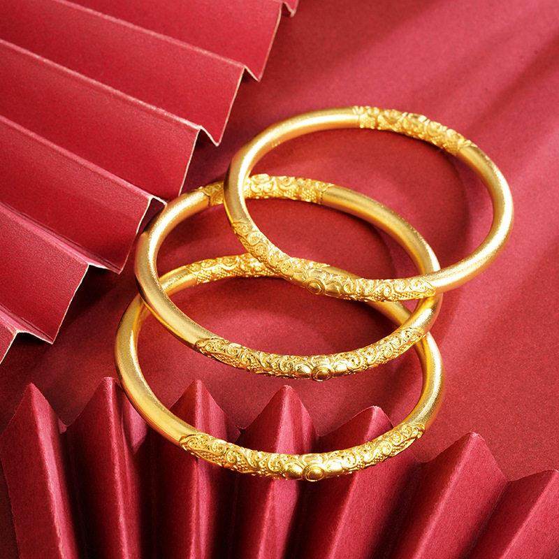孟加拉赤金首饰男女士越南沙金古法手鐲女士卷草纹久不掉色紫荆花
