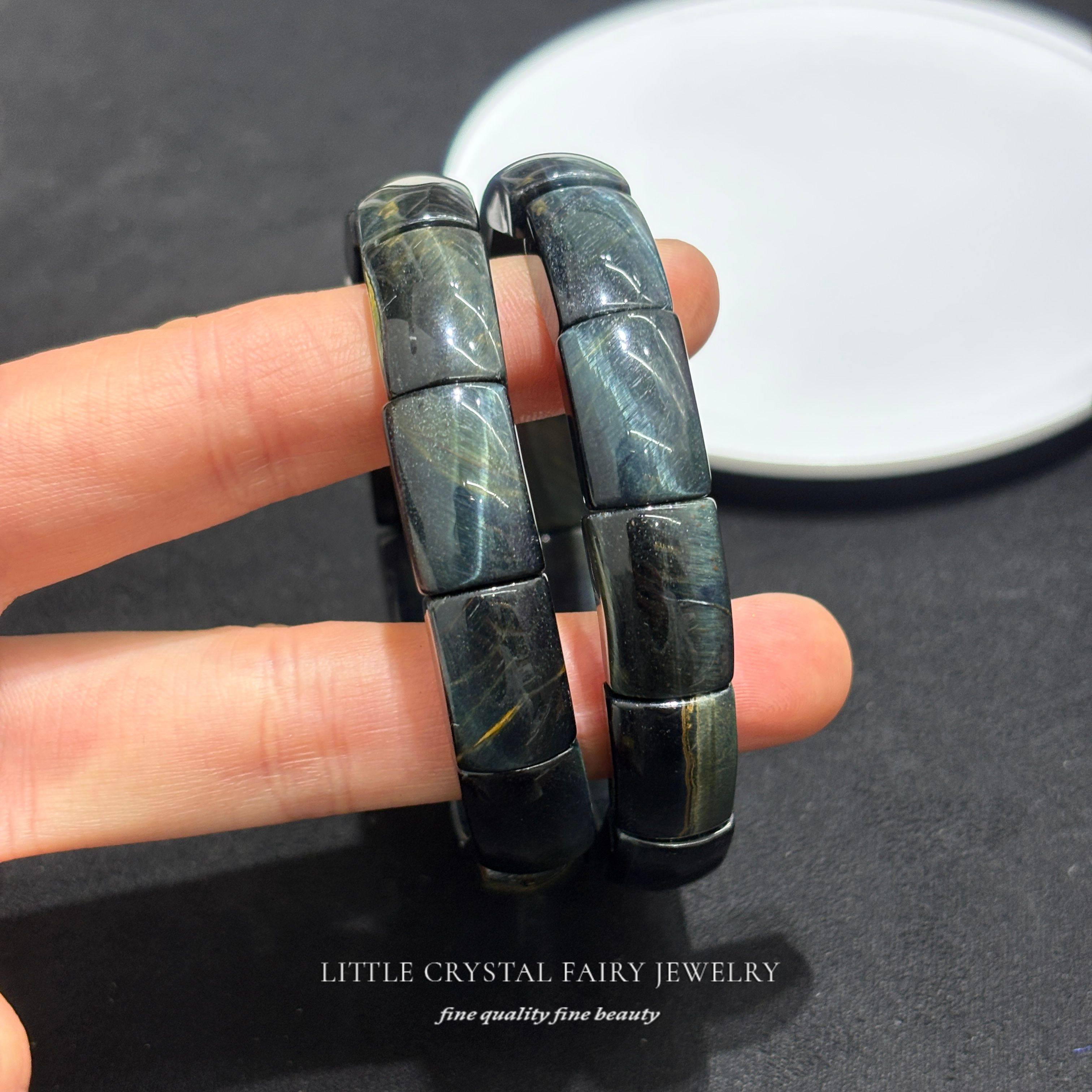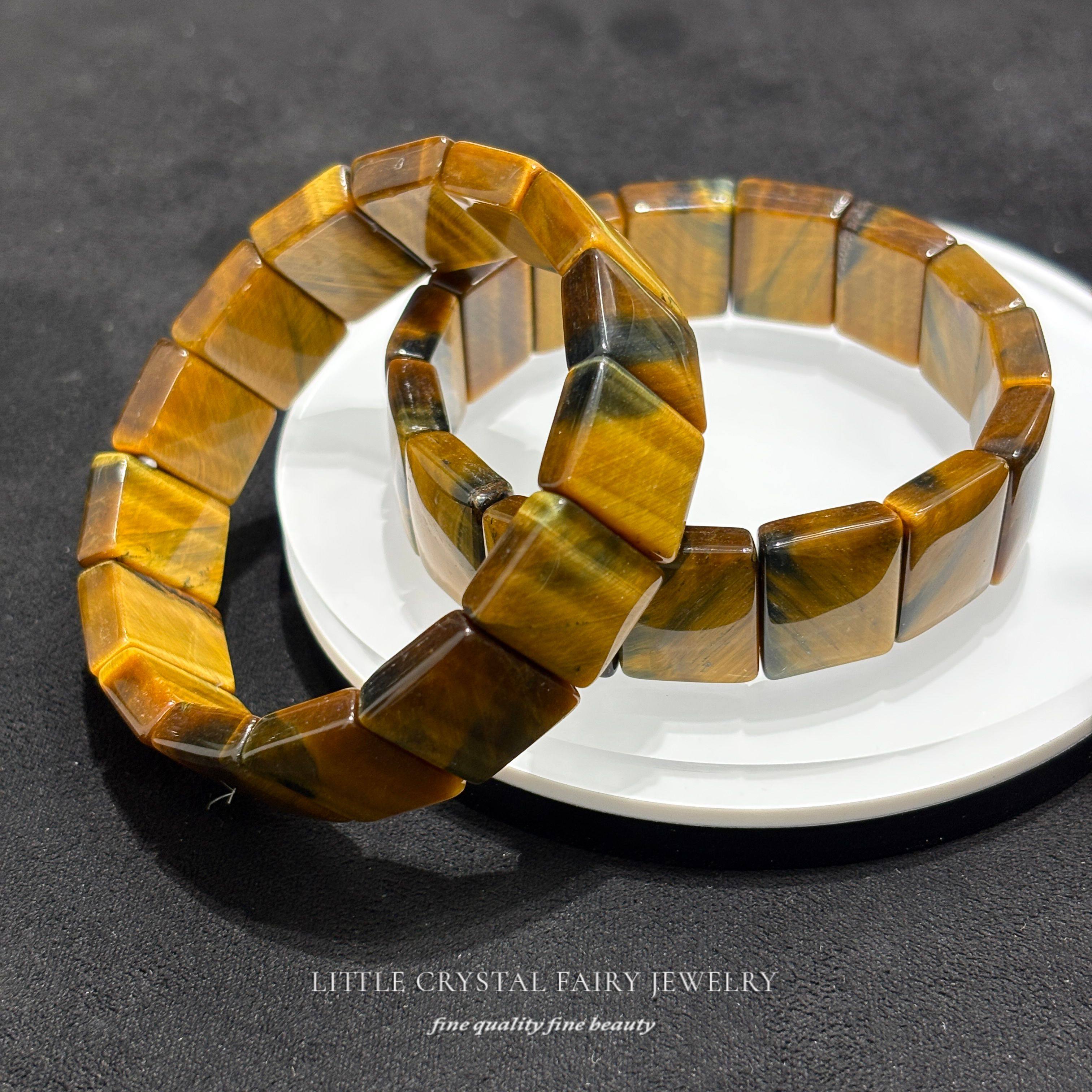 天然梦幻虎黄蓝虎眼石方形手牌排手链可diy原创水晶首饰男生礼物