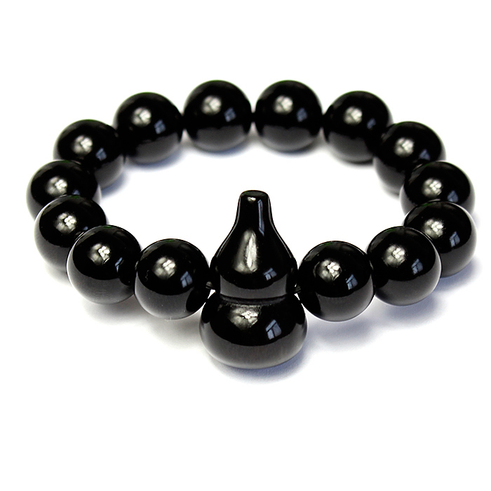 油亮乌金黑曜石手链葫芦天然黑水晶手链女首饰男礼物情侣手串饰品