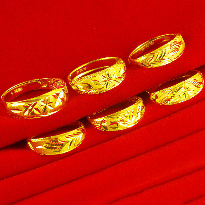 越南沙金古法戒指男女正品999镀纯金色仿真假黄金结婚指环首饰品
