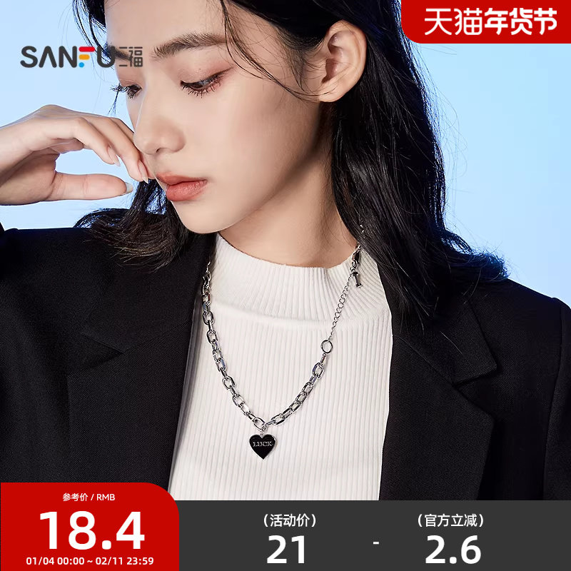三福简约项链时尚小众七夕送女友甜酷礼物颈链饰品首饰男816674