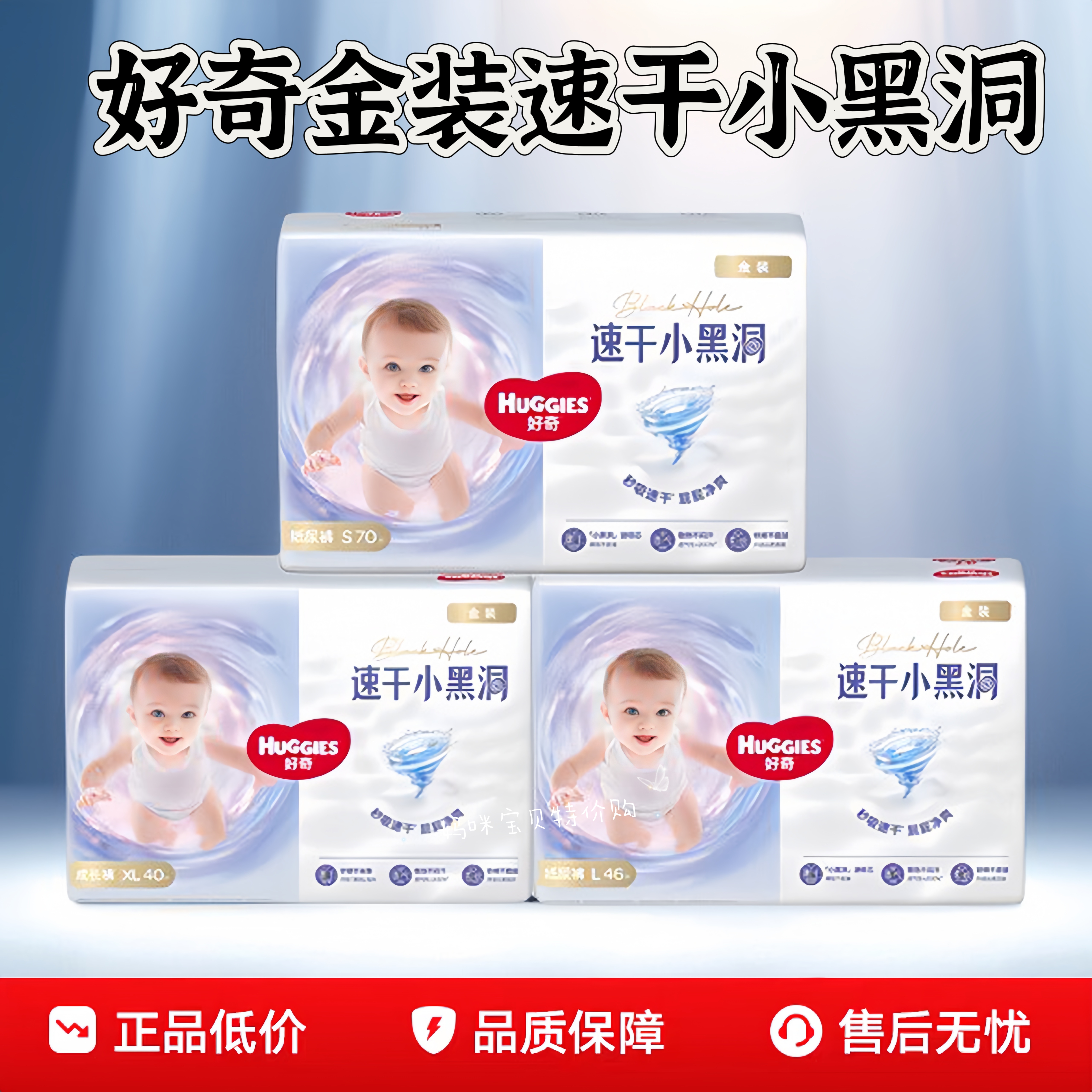 好奇金装纸尿裤M54/L46/XL37拉拉裤速干小黑洞婴儿超薄透气尿不湿