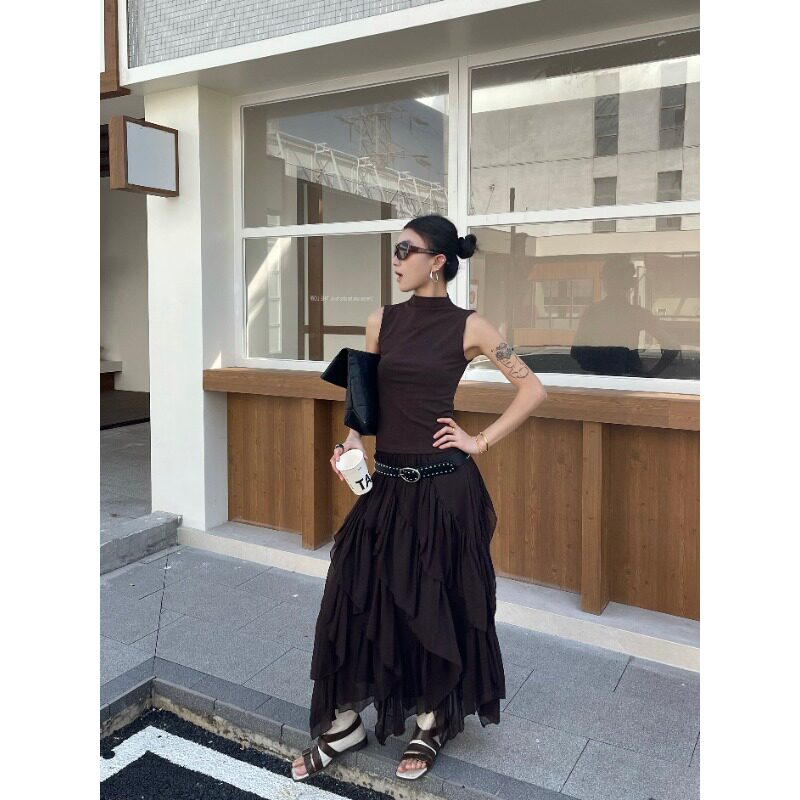0666 重工褶皱小众流苏蛋糕裙半身裙春秋女垂坠时尚减龄长裙a字裙