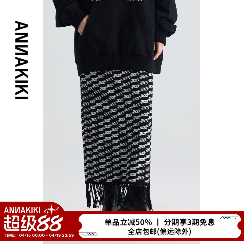 ANNAKIKI半身裙 设计师款女装小众 LOGO提花流苏半裙包臀长裙女