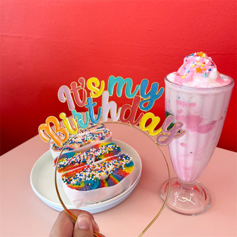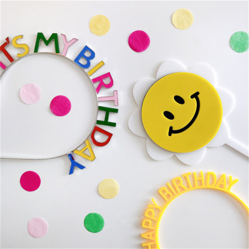 ins韩国生日快乐彩色钻石发箍彩虹头箍派对女孩宝宝儿童拍照道具