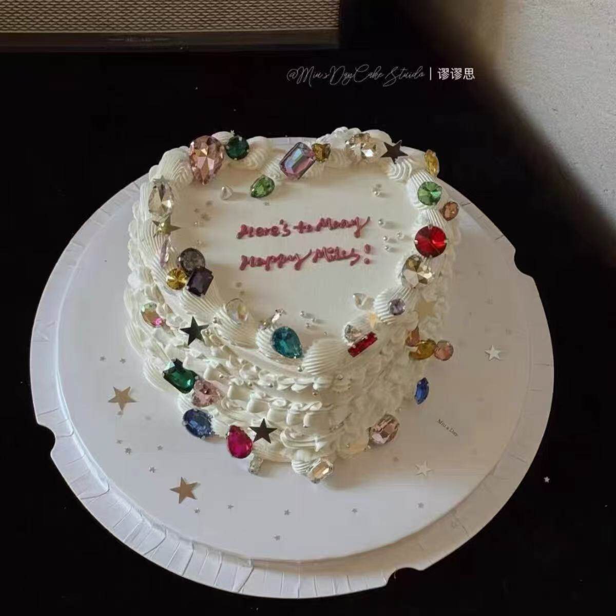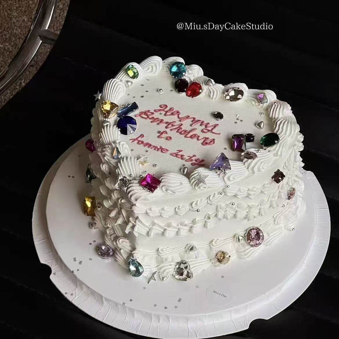 2025七夕情人节ins简约蛋糕装饰彩色钻石宝石糖珠蝴蝶结丝带装扮