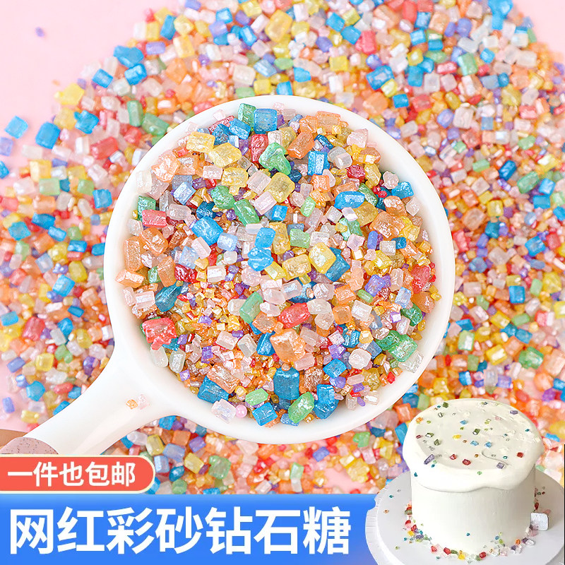 情人节彩色钻石糖网红烘焙女神唯美生日蛋糕装饰宝石砂糖甜品糖珠