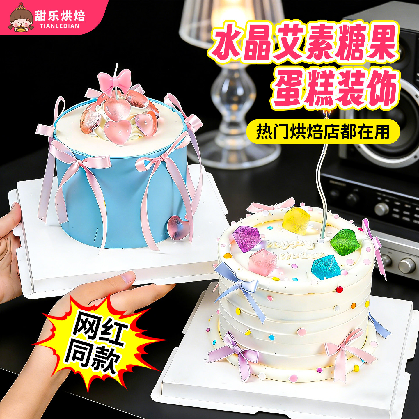 七夕情人节网红烘焙生日蛋糕装饰彩色钻石糖宝石砂糖甜品糖珠丝带
