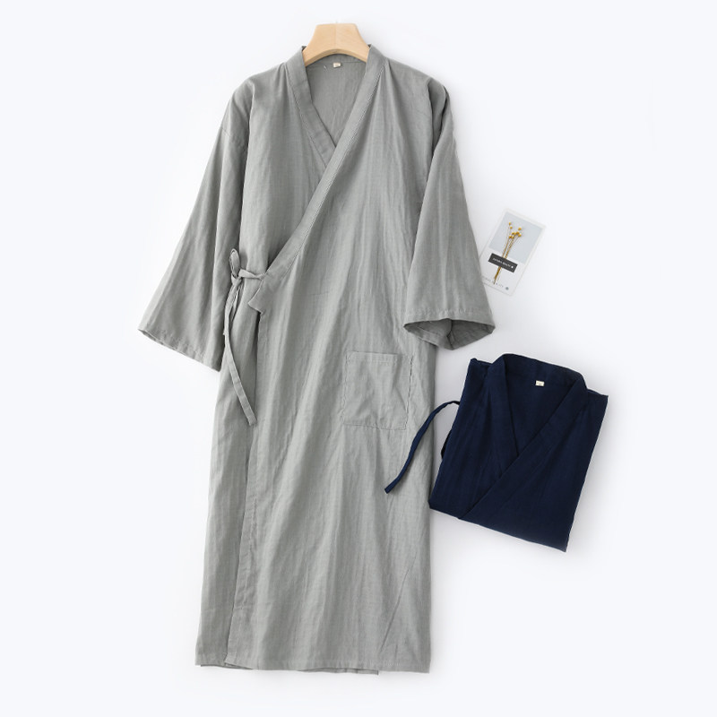 芬腾可安男士睡袍春秋季浴袍四季通用和服长袖纯棉睡衣男2025新款