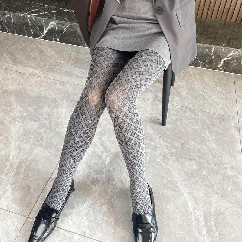 棋盘格菱格春秋季连裤袜女提花日系不透肉复古花纱色系打底厚丝袜