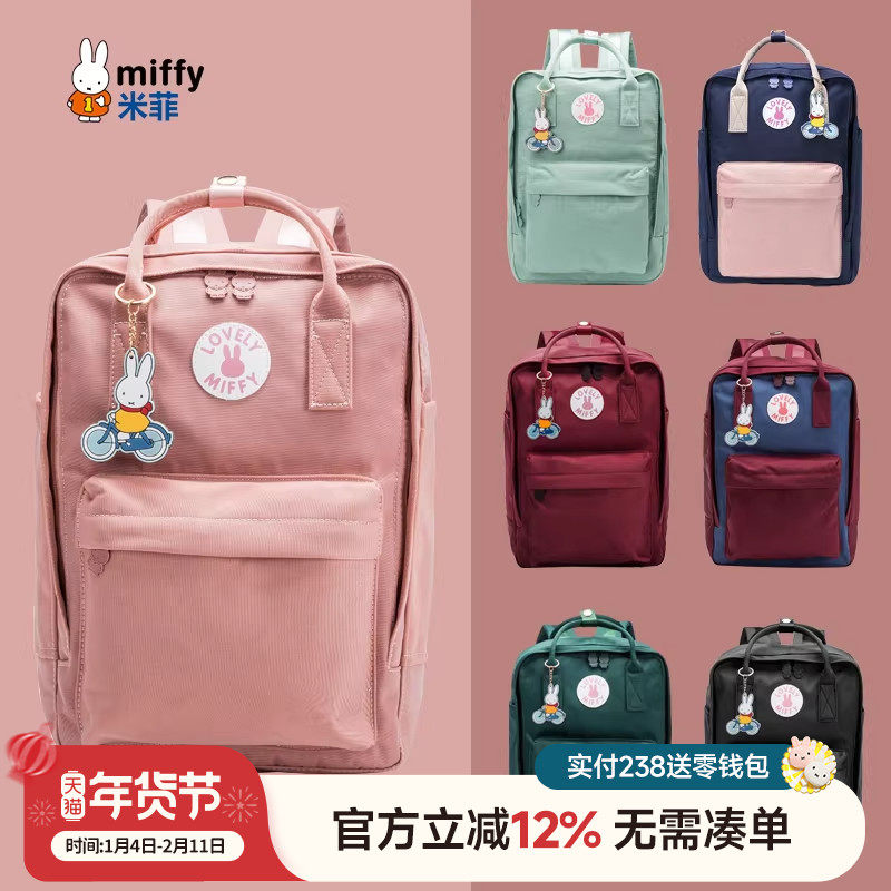 米菲双肩包女2025新款韩版潮时尚大容量纯色学生书包帆布小背包