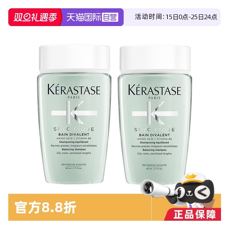 【自营】卡诗洗发水双重功能80ml去油蓬松洗发露无硅油控油*2
