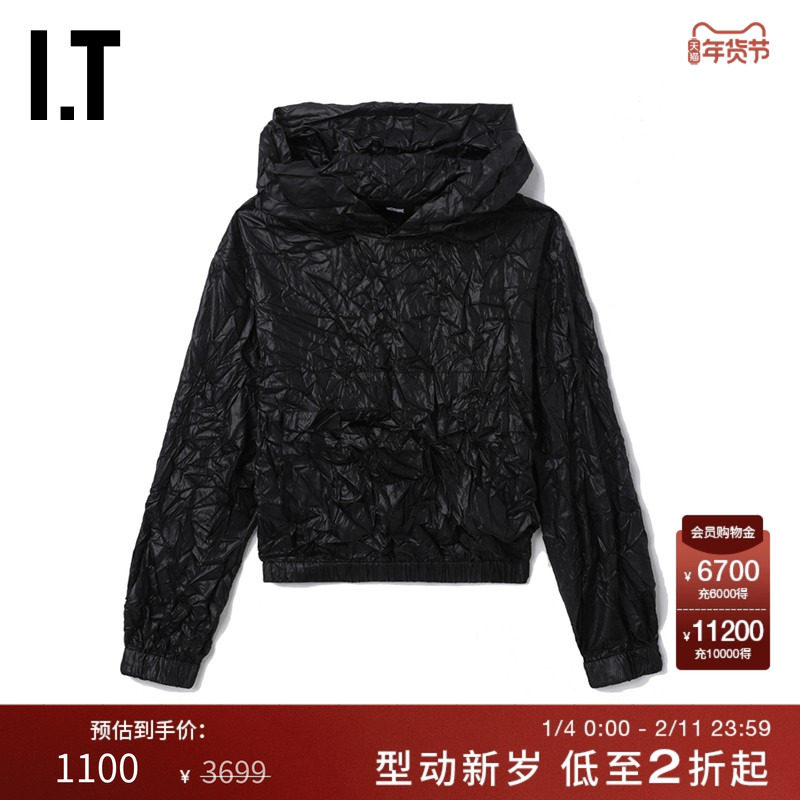 IT We11Done女装短款连帽卫衣新品潮酷个性褶皱感连帽衫088WBKXK