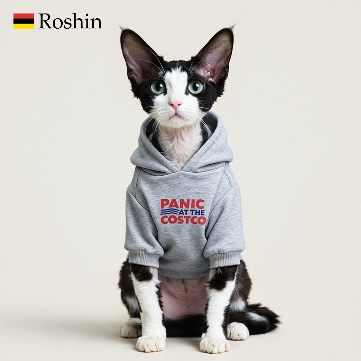 Roshin秋冬加绒加厚柔软个性创意字母连帽斯芬克斯无毛猫保暖卫衣