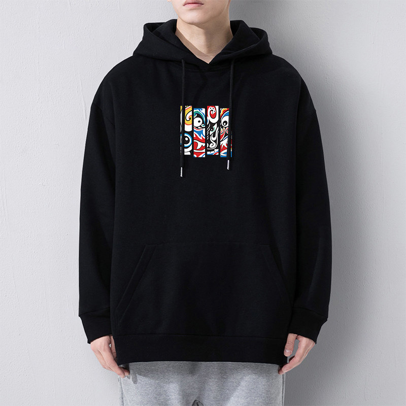 国潮中国风京剧脸谱个性卫衣连帽春秋季新款加绒男女潮牌带帽衣服