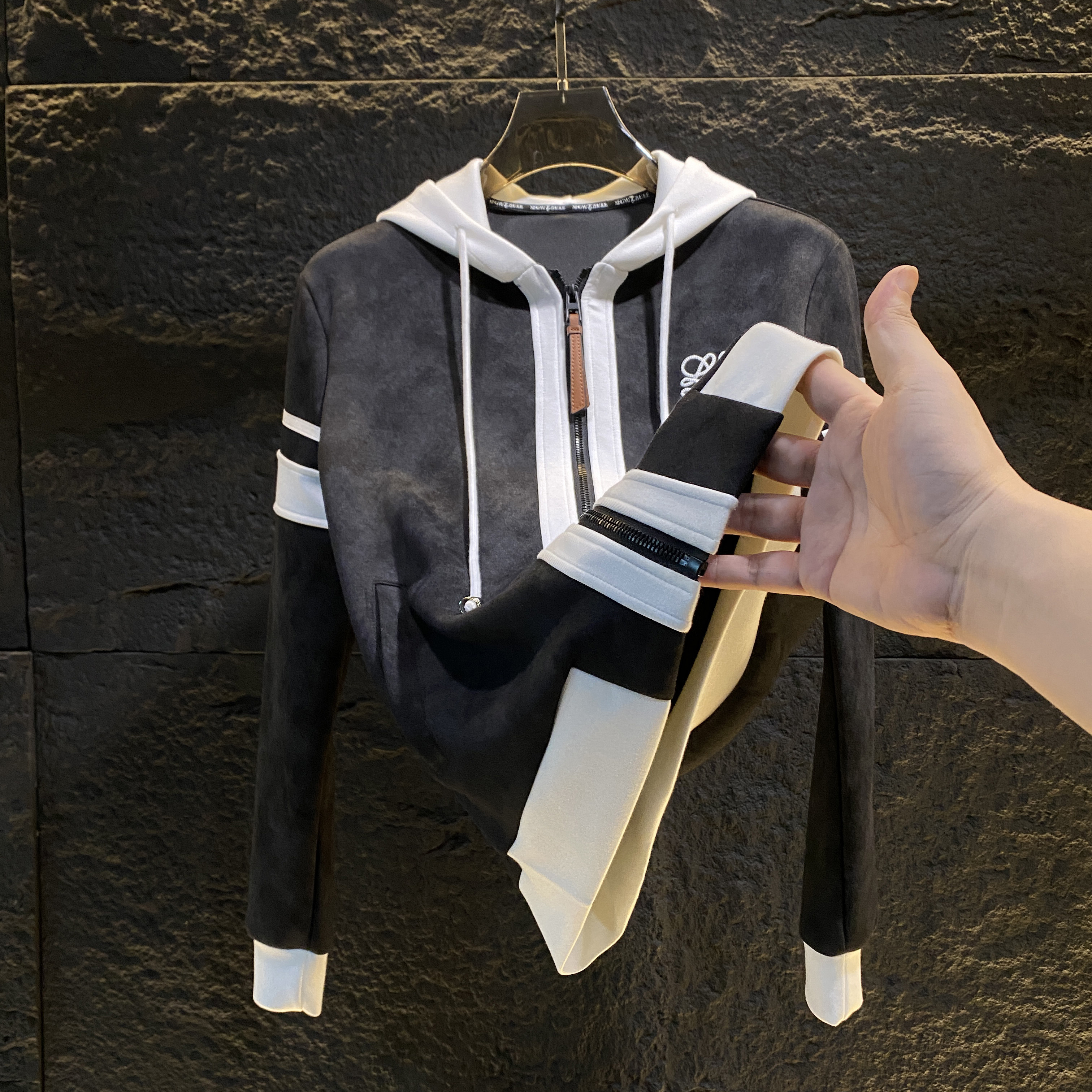 秋冬高档轻奢个性拉链休闲连帽套装男士百搭高级感卫衣长裤两件套
