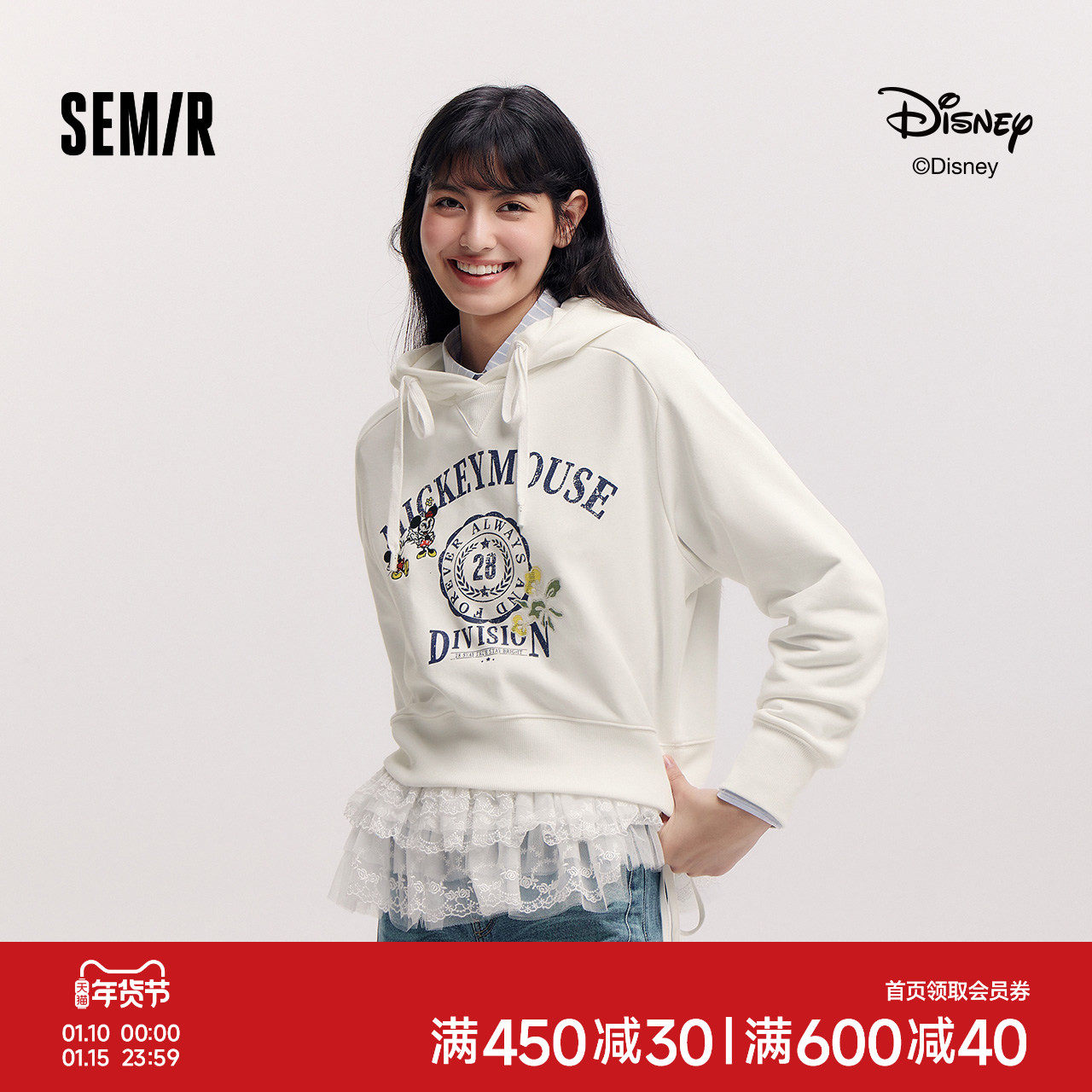 森马迪士尼合作系列卫衣女春短款图案宽松连帽复古个性设计感上衣