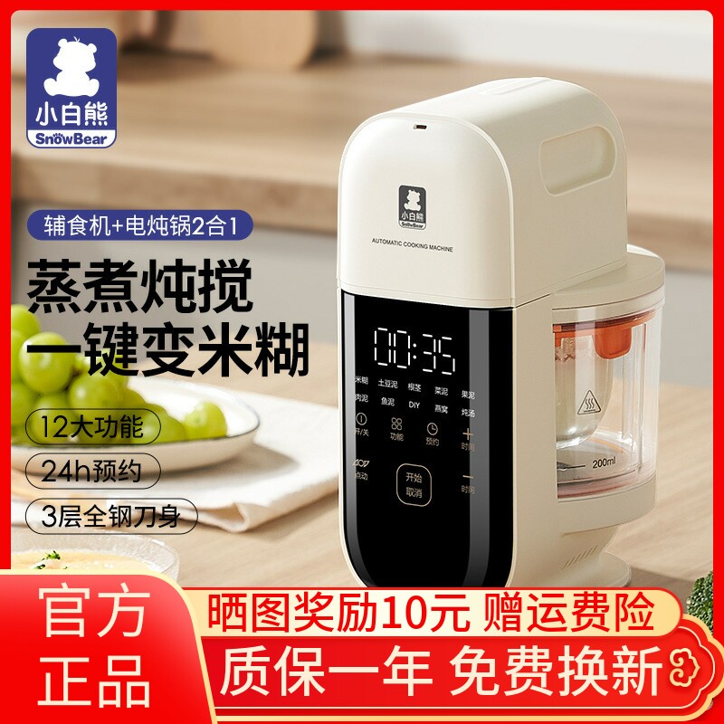 SnowBear小白熊婴儿辅食机蒸煮一体多功能宝宝料理机米糊专用打泥