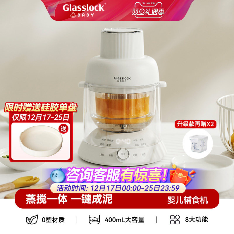 Glasslockbaby婴儿辅食机蒸煮一体宝宝料理机小型多功能米糊打泥