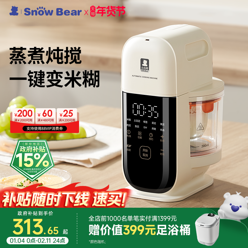 2026新款小白熊婴儿辅食机蒸煮一体料理机打泥神器宝宝辅食料理器