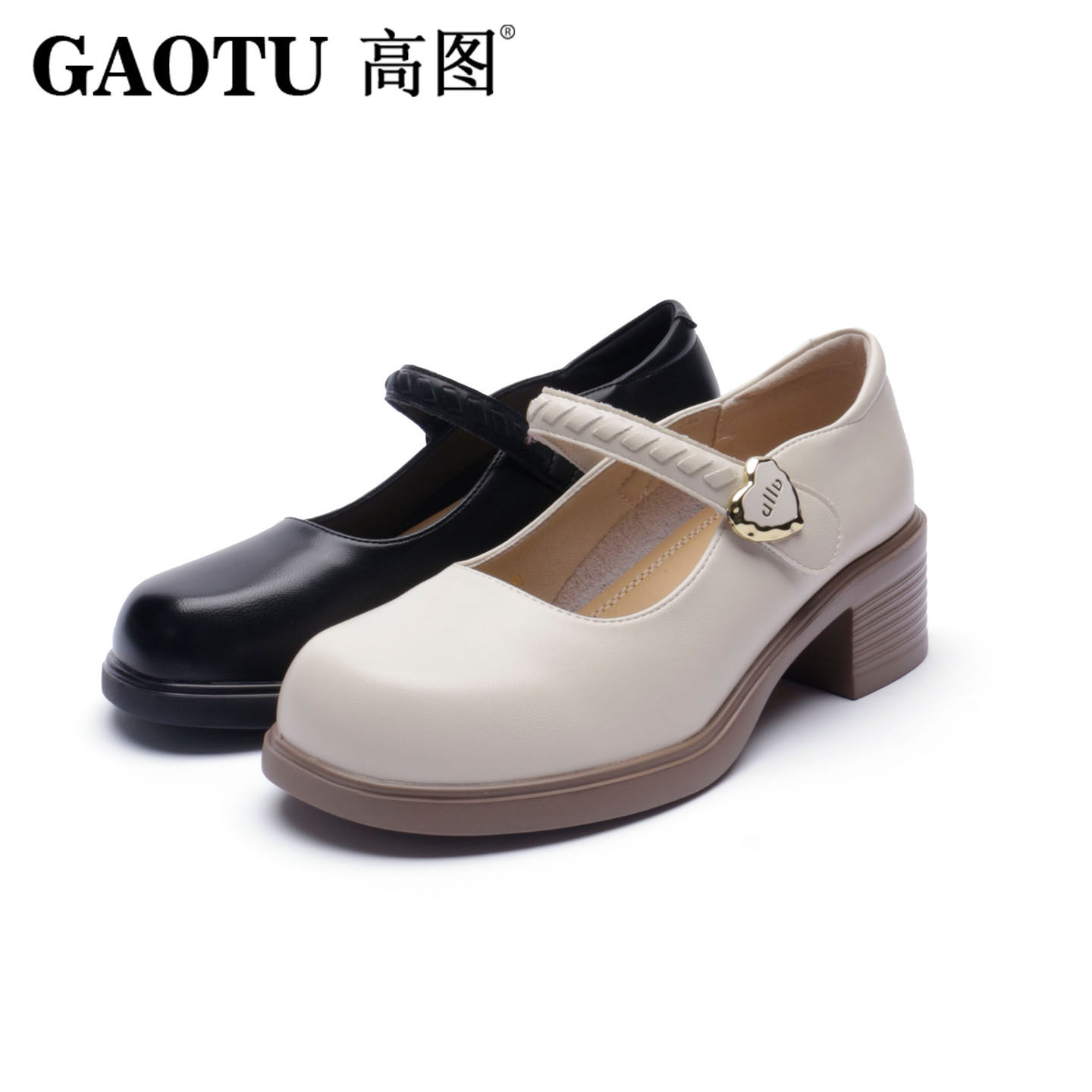 高图玛丽珍鞋女2026春复古浅口单鞋粗跟百搭学院风女鞋5642-10151