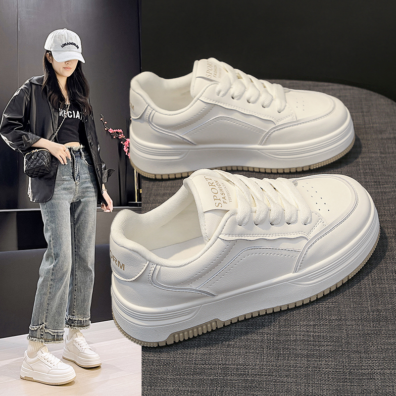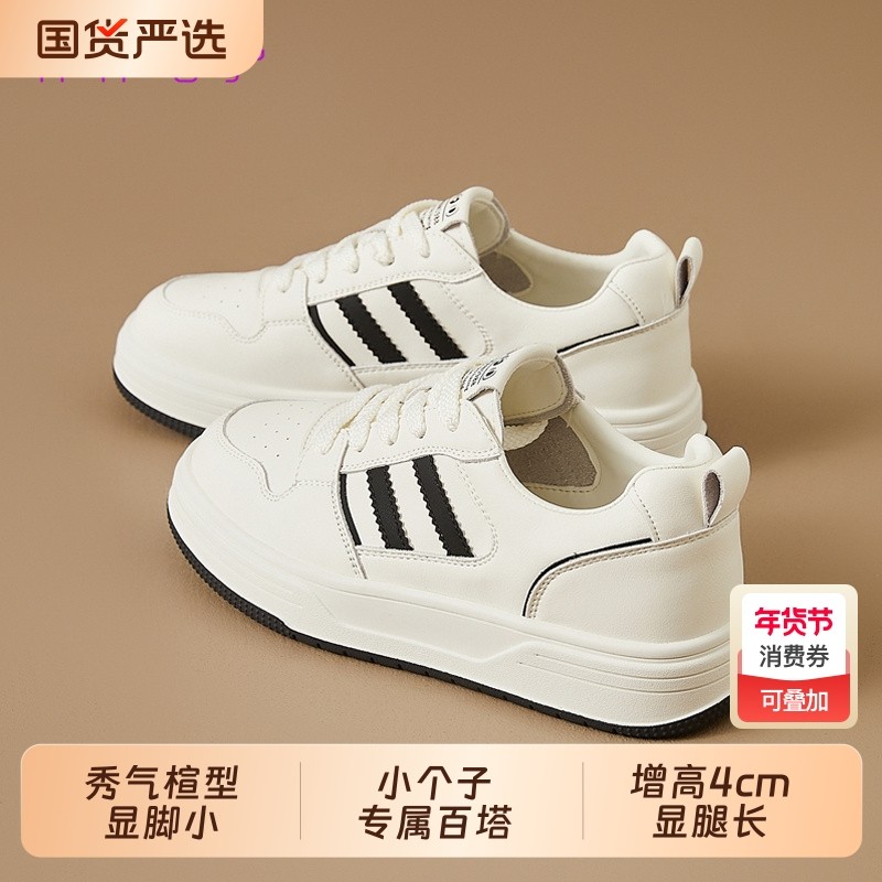 林先叁 春季百搭小白鞋女2025学院风女鞋小众设计休闲运动厚底鞋