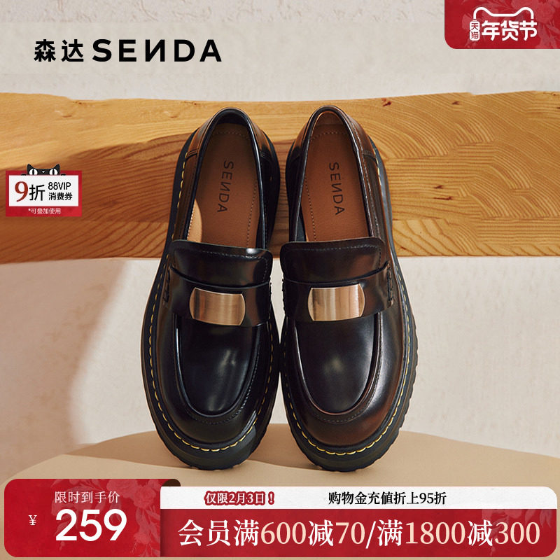 森达乐福鞋春秋款学院风女鞋厚底增高真皮高跟单鞋ZCC26CA4