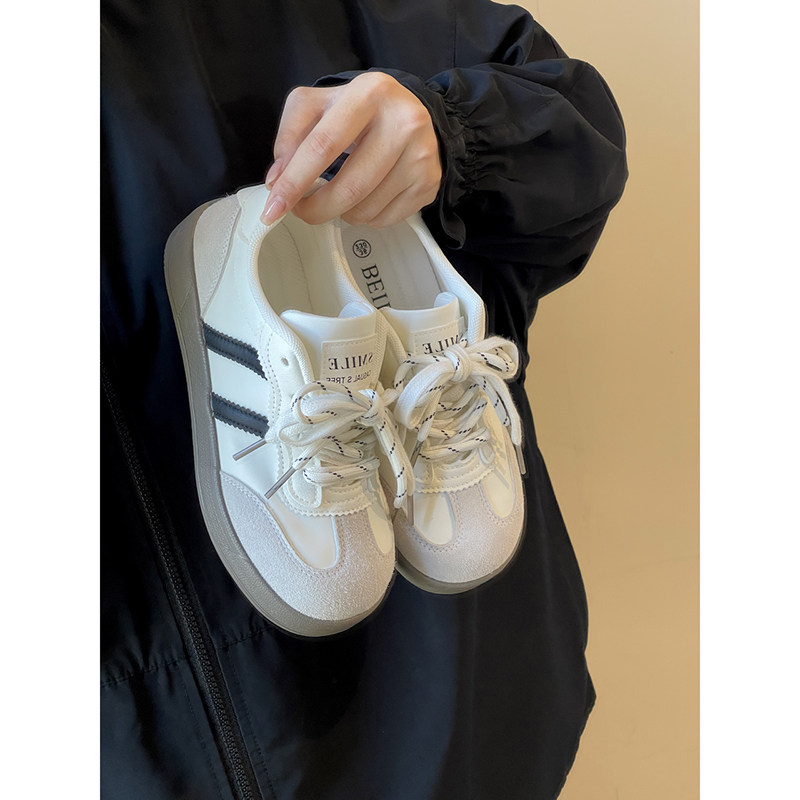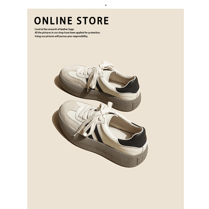牛皮版~德训鞋厚底运动休闲板鞋女秋冬百搭阿甘鞋增高学院风女鞋