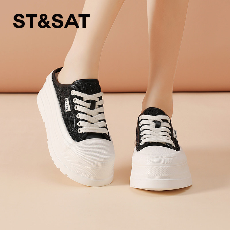 星期六厚底增高6cm休闲板鞋2026透气时尚经典一脚蹬学院风女鞋子