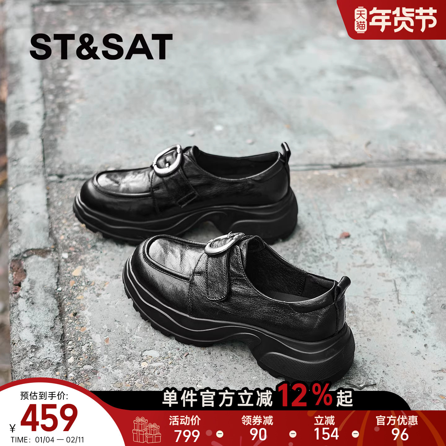 星期六英伦风厚底乐福鞋女黑色真皮不累脚增高单鞋圆头学院风女鞋
