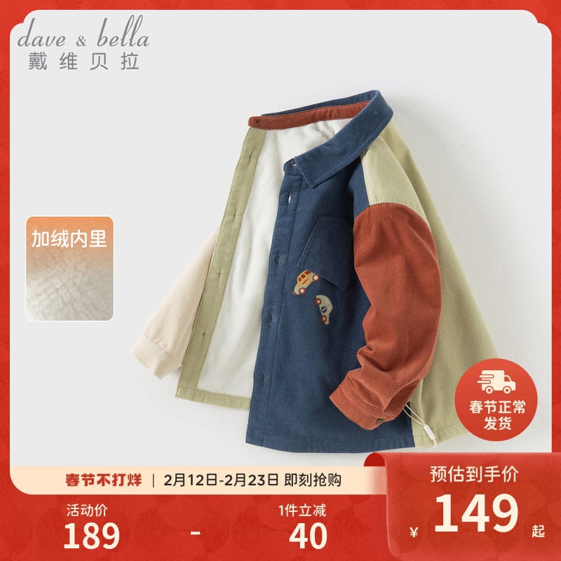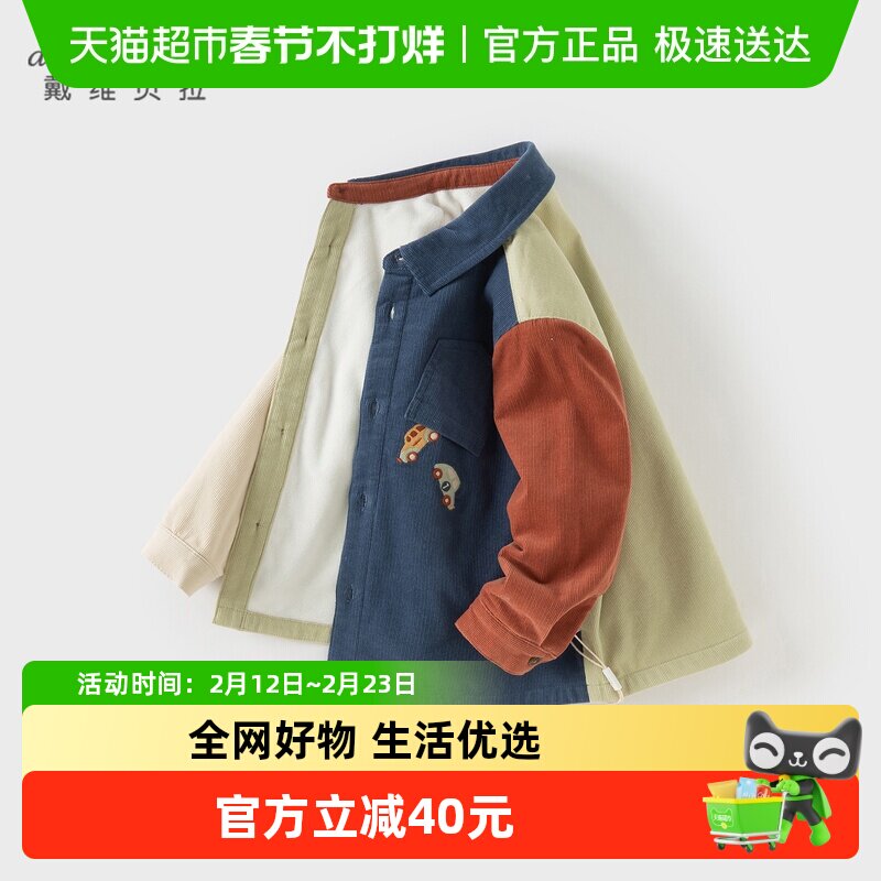 戴维贝拉儿童A类衬衫2026男童新款撞色灯芯绒衬衣男宝宝冬季外套