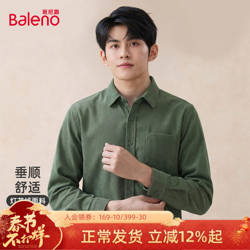 班尼路灯芯绒衬衫男款春季复古工装风休闲长袖衬衣翻领男士外套A