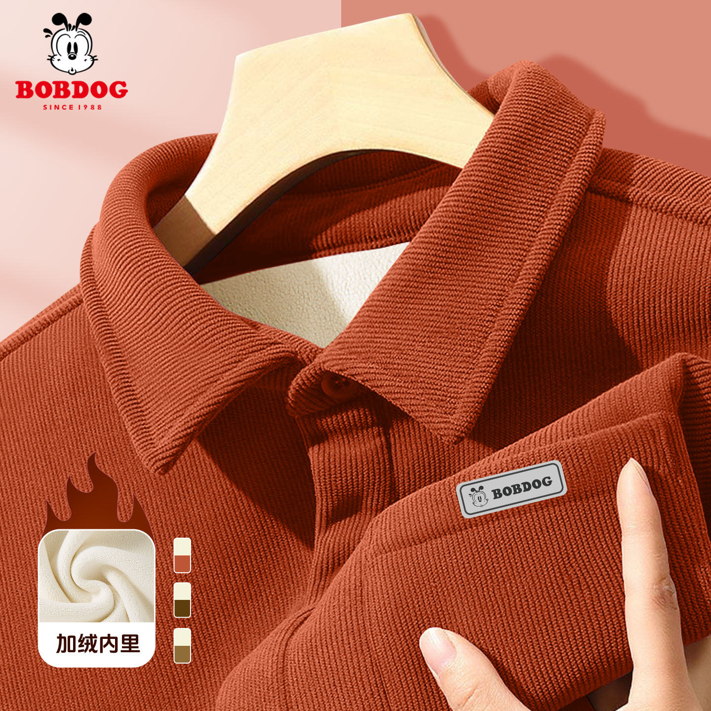 巴布豆儿童加绒加厚衬衫2026新款中大童灯芯绒衬衣男童外套秋冬装