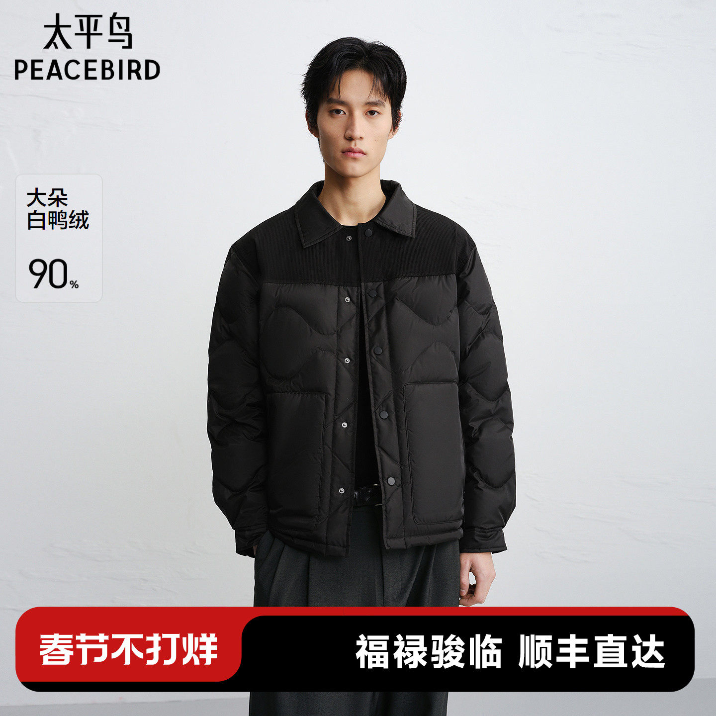 太平鸟男装 衬衫羽绒服时尚休闲灯芯绒拼接轻薄防寒保暖羽绒外套