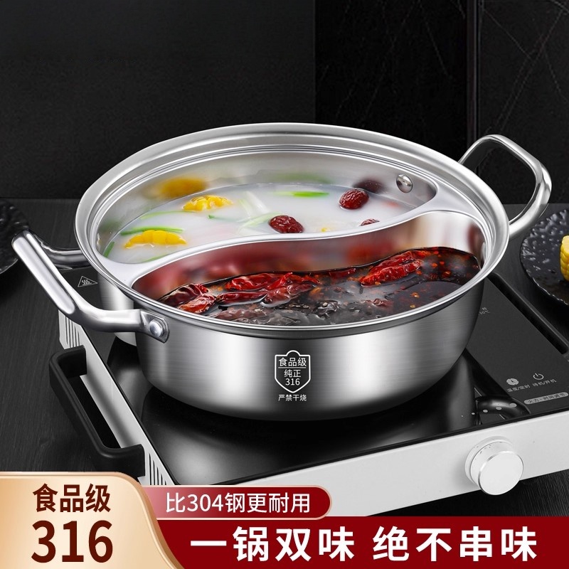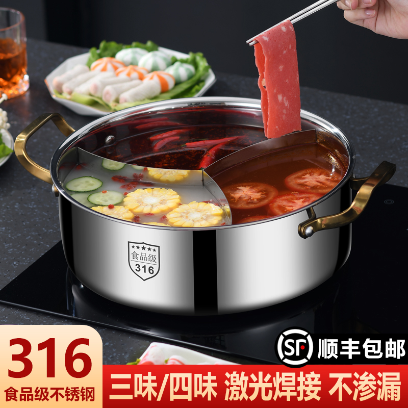 鸳鸯锅316不锈钢食品级电磁炉火锅锅家用三味四味涮锅特厚火锅盆