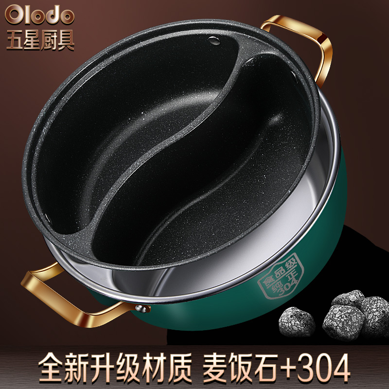 304火锅锅商用高端麦饭石鸳鸯锅一体成型家用电磁炉火锅锅子专用