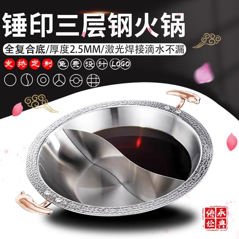 304锤印不锈钢火锅锅具鸳鸯锅商用火锅盆加厚子母锅电磁炉火锅锅