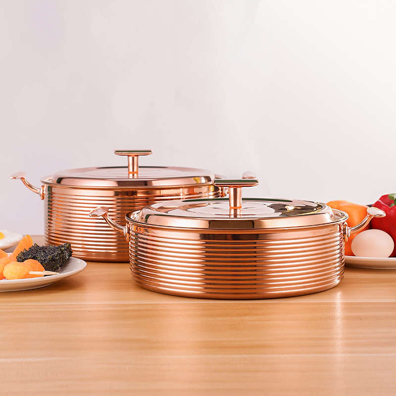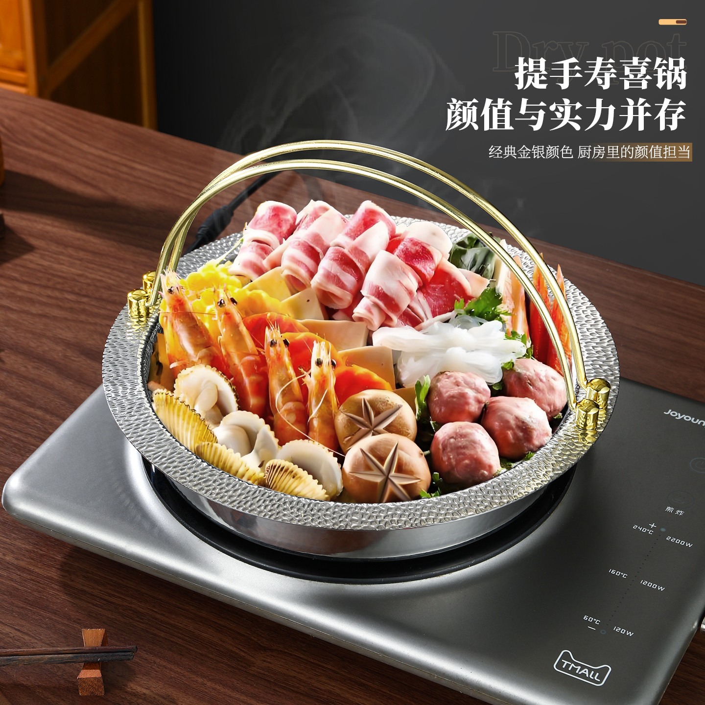 不锈钢火锅清汤锅商用小火锅金色双耳锅涮锅三层钢电磁炉火锅锅具