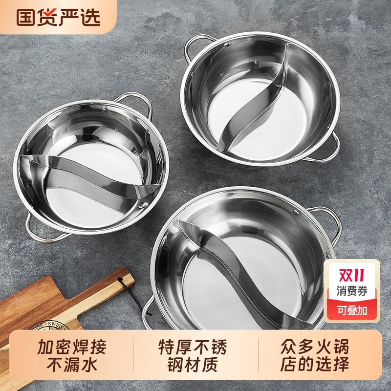 鸳鸯锅吃火锅锅具家用锅电磁炉专用火锅盆商用加厚304不锈钢户外